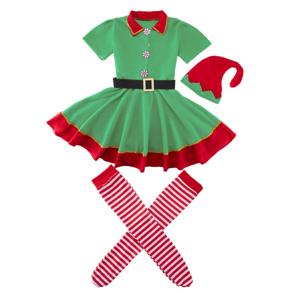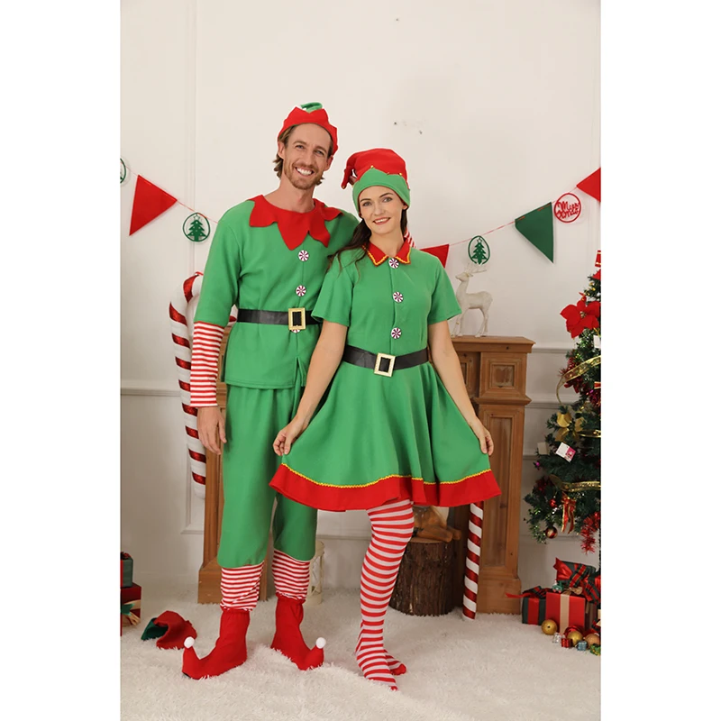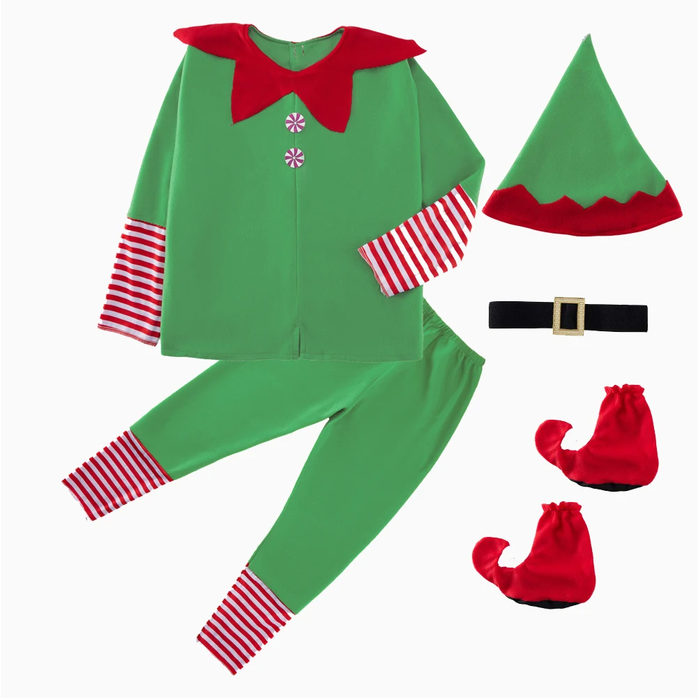 Christmas Family Matching Clothes New Year Christmas Elf Costume Father Mother Kids Clothing Set Boys Tops Pants Hat Belt Outfit