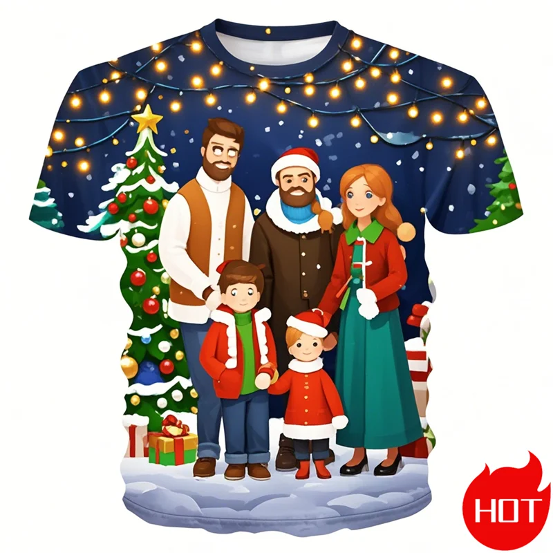 Esta t-shirt de Natal 2024 com impressão 3D de Pai Natal é perfeita para crianças modernas! Estilo street hip hop casual e divertido.