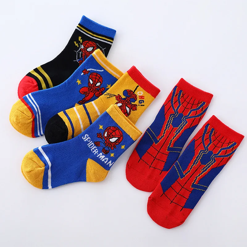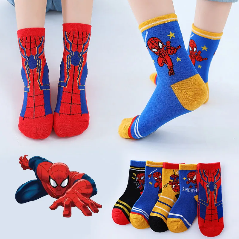 5 Pairs Anime Cosplay Socks Marvel Heros Spiderman Children Socks Cartoon Baby Cotton Socks for Boys 1-12 Years Birthday Gifts