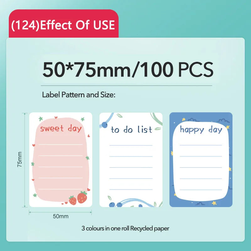 Rolo de Etiquetas Térmicas Adesivas Niimbot 2 Polegadas - Papel Colorido Impermeável para Impressora B1 B21