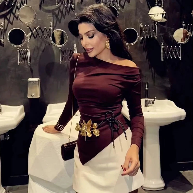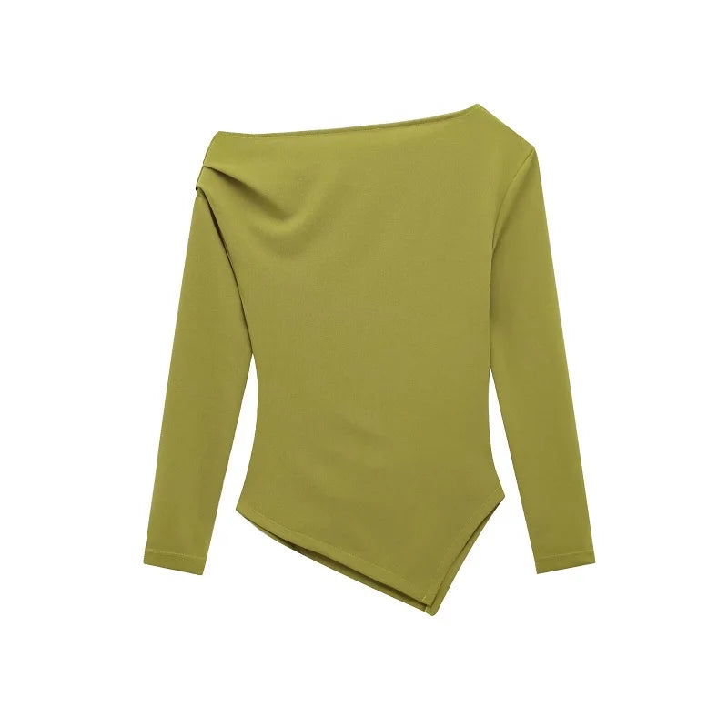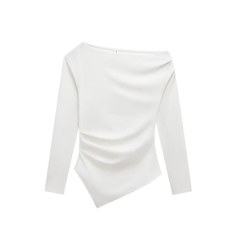 Top Feminino Assimétrico Ombro Descoberto - Franzido Casual Manga Comprida Primavera